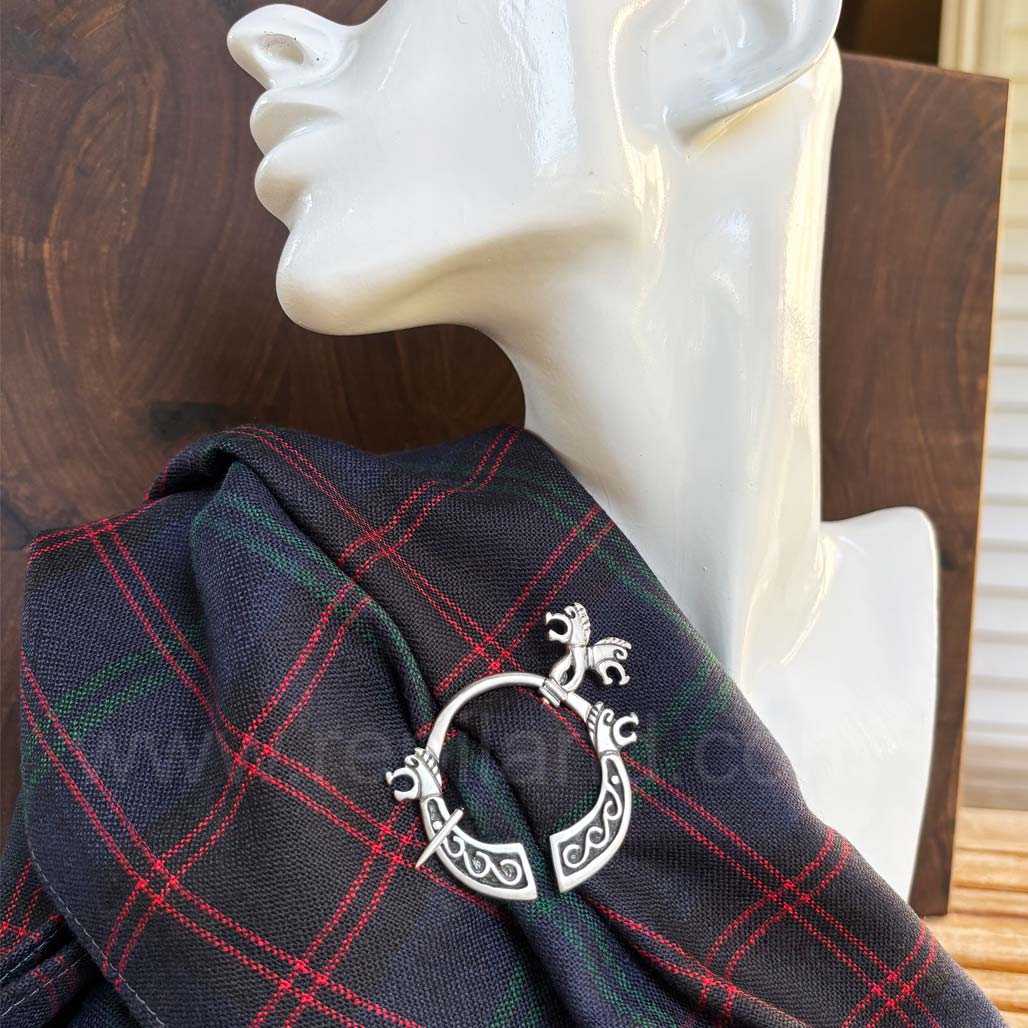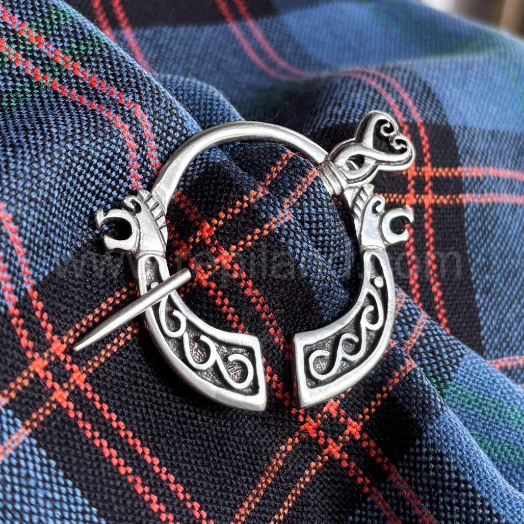 About Penannular brooches: The Celtic brooch, more properly called the penannular brooch, is a type of clothes fastener. They are especially associated with the beginning of the Early Medieval period in Ireland and Britain. Beginning as utilitarian fasteners in the Iron Age and Roman period, they are especially associated with the highly ornate brooches produced in precious metal for the elites of Ireland and Scotland from about 700 to 900. Penannular brooches feature a long pin attached by its head to a ring. The pin can move freely around the ring as far as the terminals, which are close together. The penannular brooch is a simple and efficient way of fastening loosely woven cloth (where the pin will not leave a permanent hole).