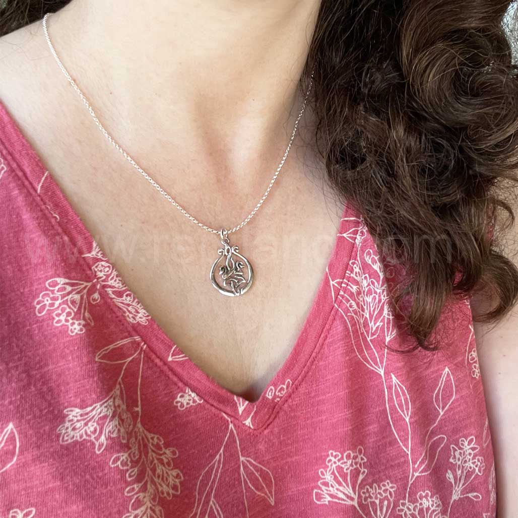 The Cygnet Pendant measures 1 inch long and 3/4 inch across. An adjustable sterling silver chain is included, please see the photos above for instructions if needed. We've also included the option to switch to a heavier chain, in a variety of lengths, at no additional cost.