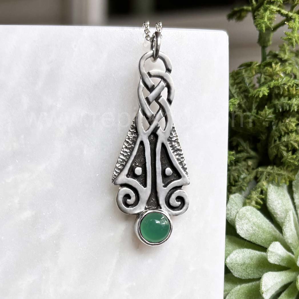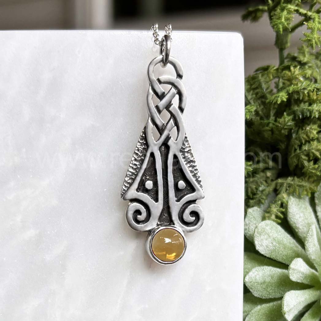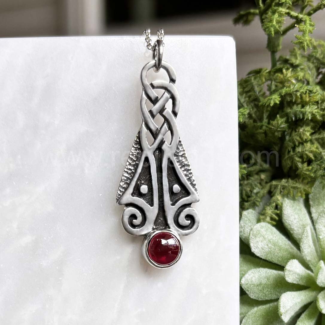 The first design of 2023 is here! Dùisg is the Scots-Gaelic word meaning 'awaken'. Rob was inspired by the idea of a newly emerged butterfly for this lovely pendant. The top has pierced, curving knotwork that gently flares out to a solid bottom with textured sides, bead accents and an 8mm gemstone in a bezel.