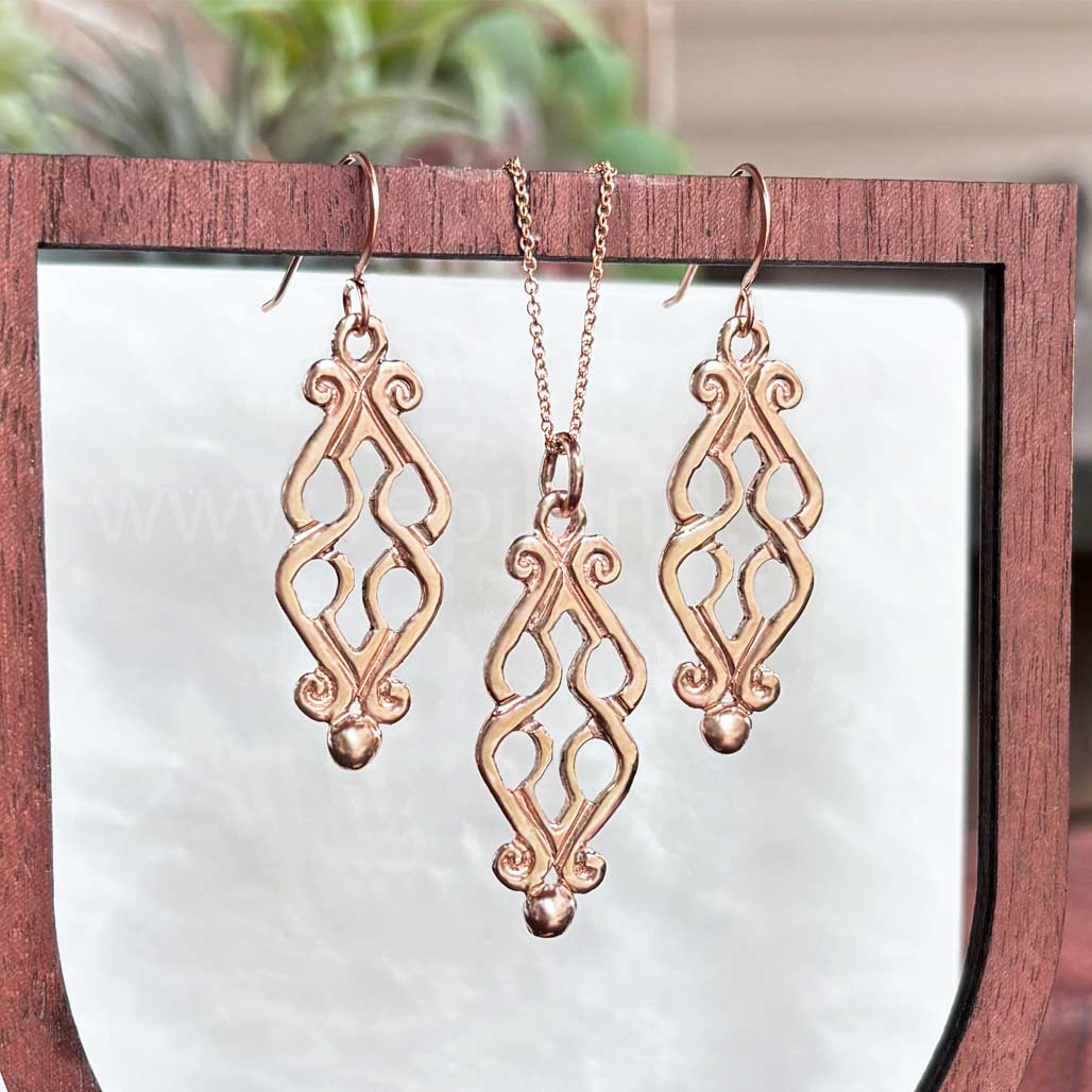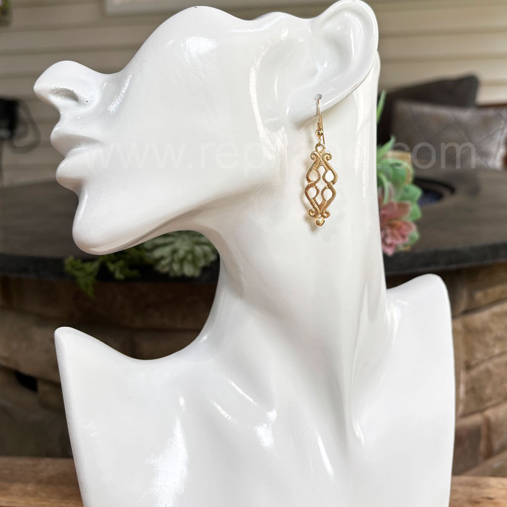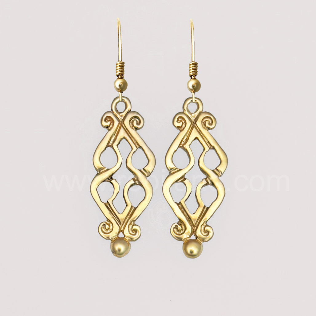 Fadó is Irish meaning long ago. It is used similarly to Once Upon a Time in storytelling. The Fadó Knot Earrings are one of those timeless pieces, they look modern yet have a touch of ancient magic. The earrings are formed from two overlapping heart shaped pieces with curled ends and a large bead accent at the bottom.