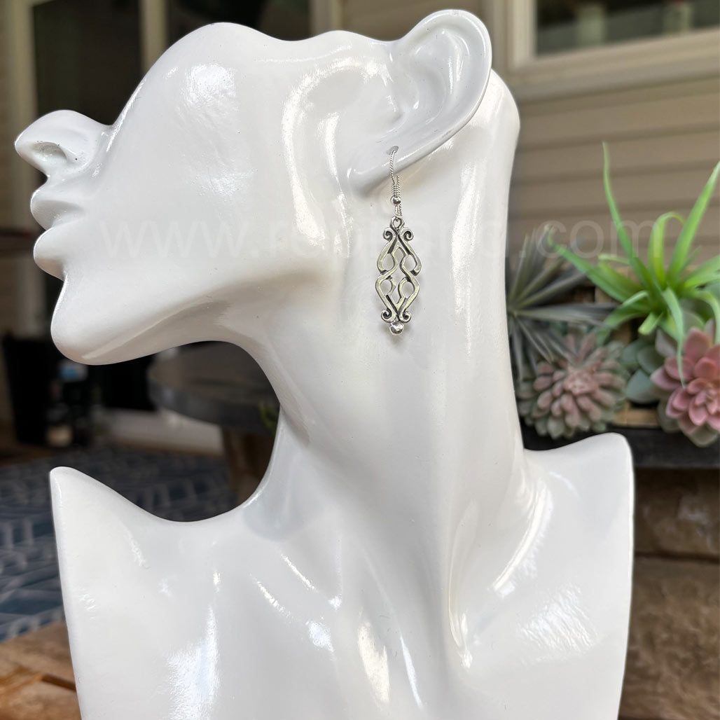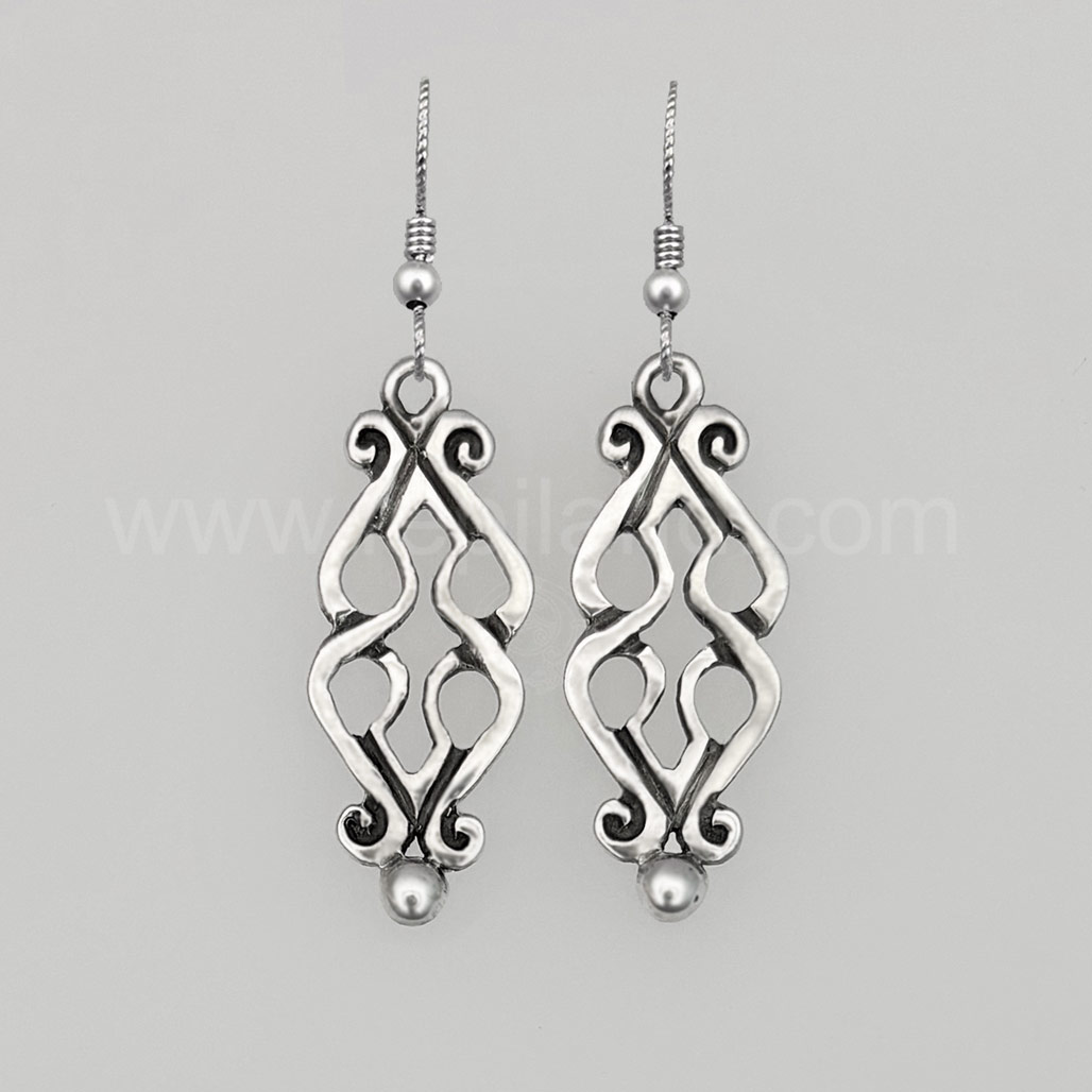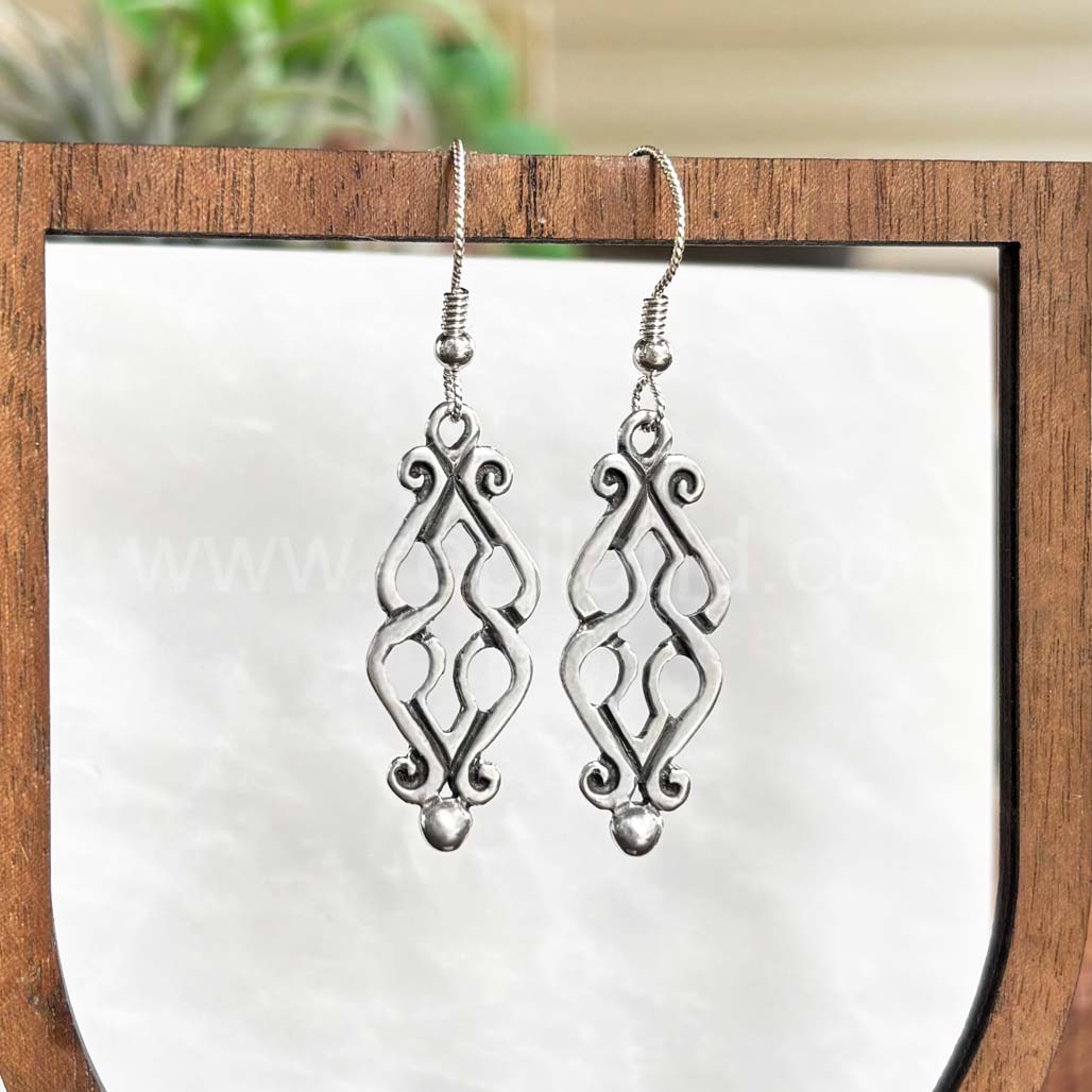 Fadó is Irish meaning long ago. It is used similarly to Once Upon a Time in storytelling. The Fadó Knot Earrings are one of those timeless pieces, they look modern yet have a touch of ancient magic. The earrings are formed from two overlapping heart shaped pieces with curled ends and a large bead accent at the bottom.