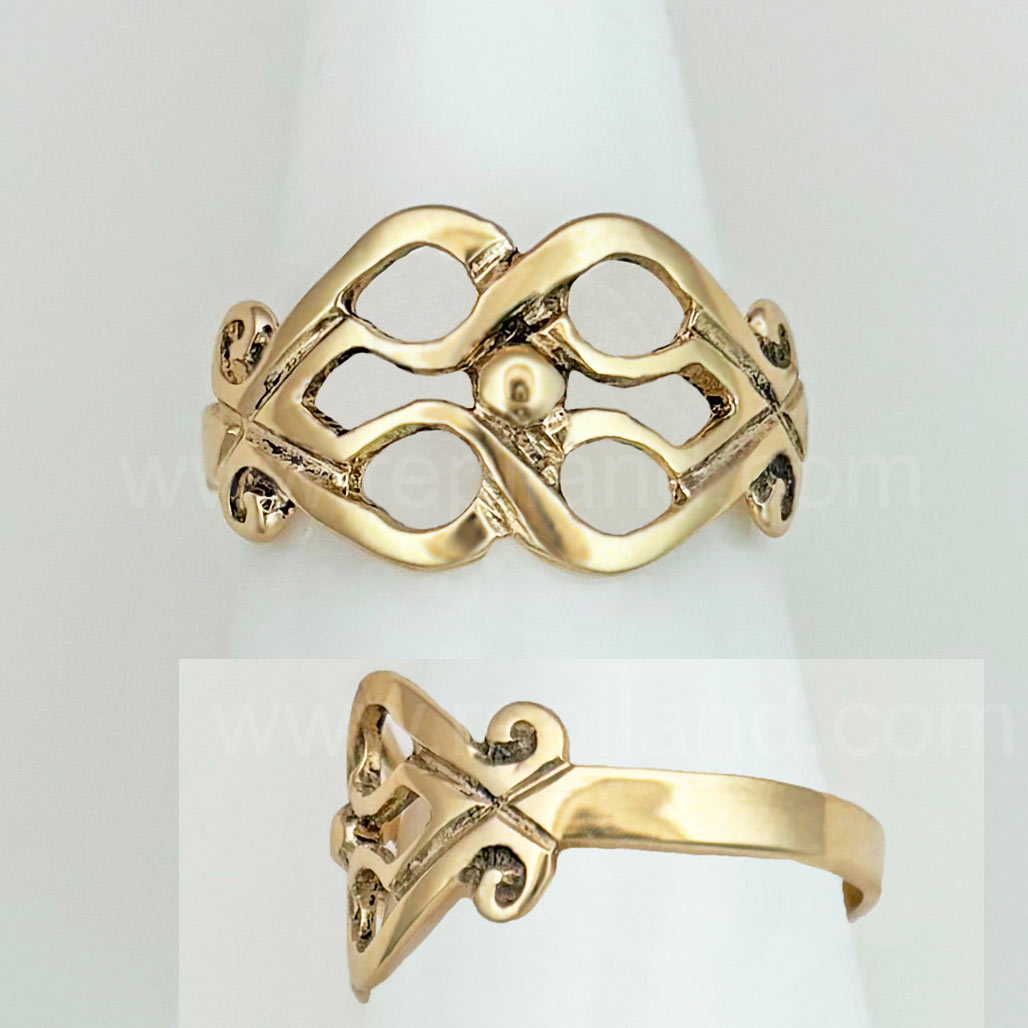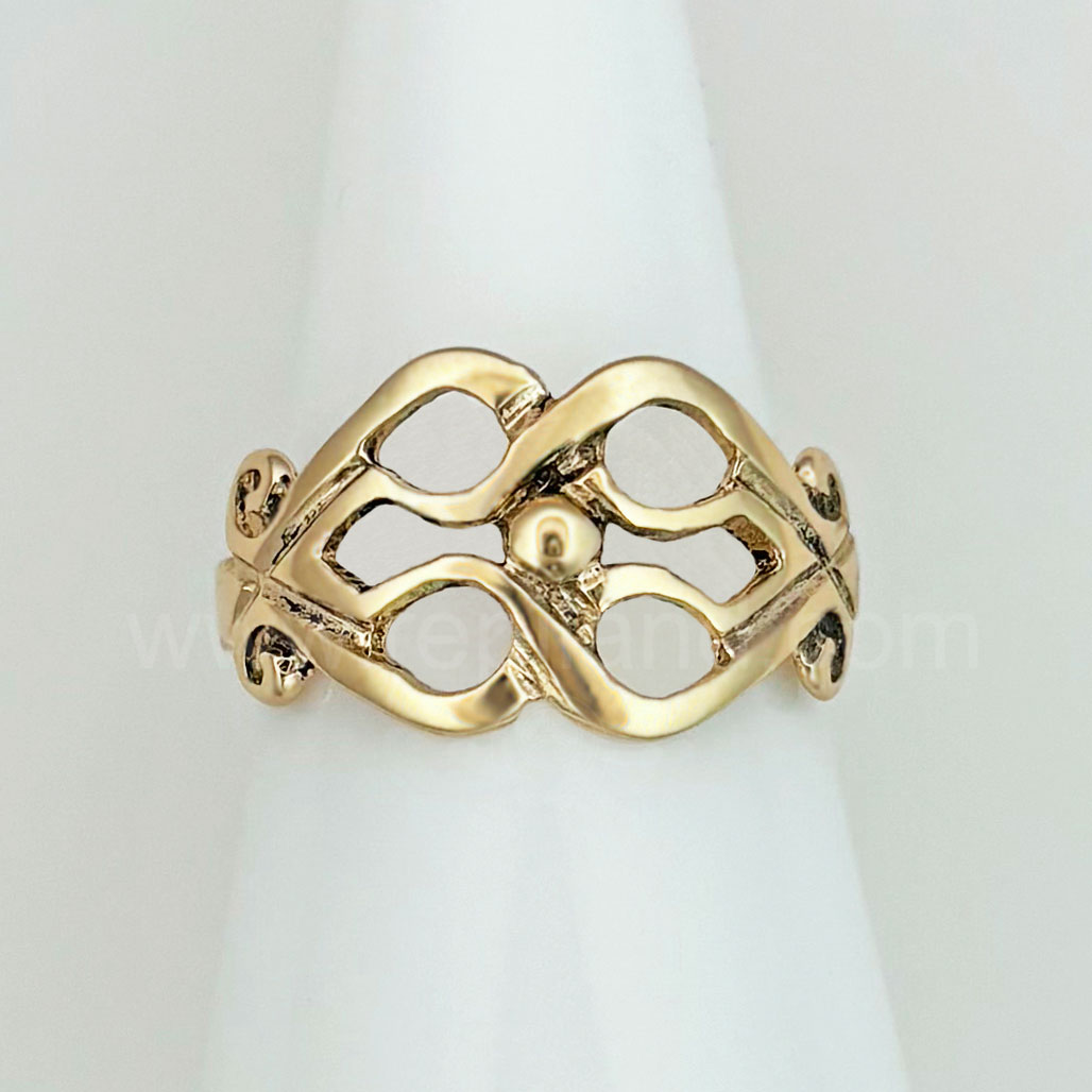 Fadó is Irish meaning long ago. It is used similarly to Once Upon a Time in storytelling. The Fadó Knot Ring is one of those pieces that is timeless, it looks modern yet has a touch of ancient magic. The ring is formed from two overlapping heart shaped pieces with curled ends and a large bead accent at the top center.
